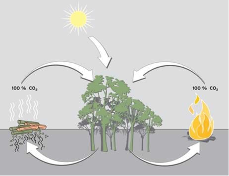 Dementsprechend ist die CO2-Bilanz bei der Verbrennung von Holz gleich null. Im Gegensatz dazu steht die Verbrennung von Öl oder Gas, dessen gebundener Kohlenstoff vor Jahrmillionen und über sehr lange Zeiträume langsam aus der Umgebung entzogen wurde und bei der Verbrennung heute im Vergleich zum Entstehungszeitraum sehr plötzlich wieder freigesetzt wird.